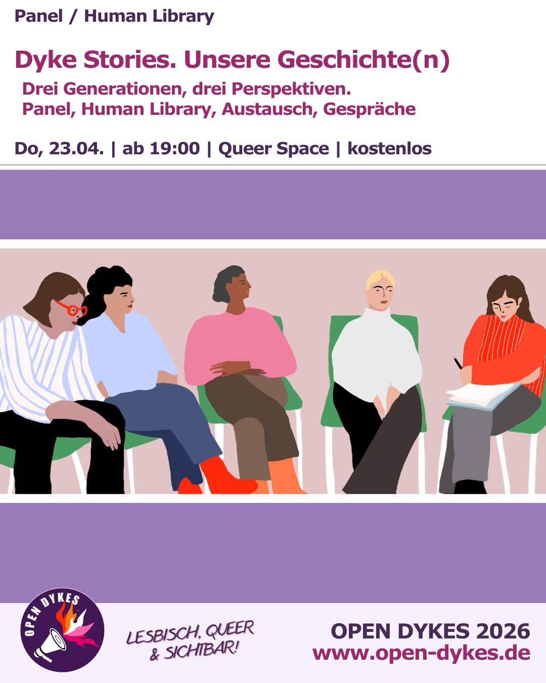 Zielgruppe: für Alle Die Foto-Ausstellung „LESBE wird großgeschrieben“ hing bereits 2023 in der Stadtbibliothek Mannheim und zeigt die Vielfalt lesbischer Realität: verschiedene Generationen aus den unterschiedlichsten Berufsfeldern mit ganz diversen Lebensstilen, Vorlieben und Hobbies. Die Porträts von Fotografin Elena Barba und die dazugehörigen Geschichten der Models stellen deren persönliche Selbstverortungen als lesbische Frauen und queere […]