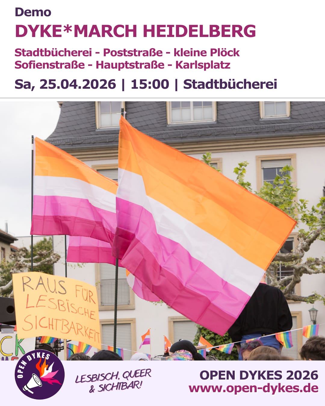 Am Samstag, 25. April 2026 findet wieder der Dyke* March Heidelberg statt – ein lauter, bunter und solidarischer Protest für lesbische, queere und FLINTA*-Sichtbarkeit!Gemeinsam gehen wir auf die Straße, um […]