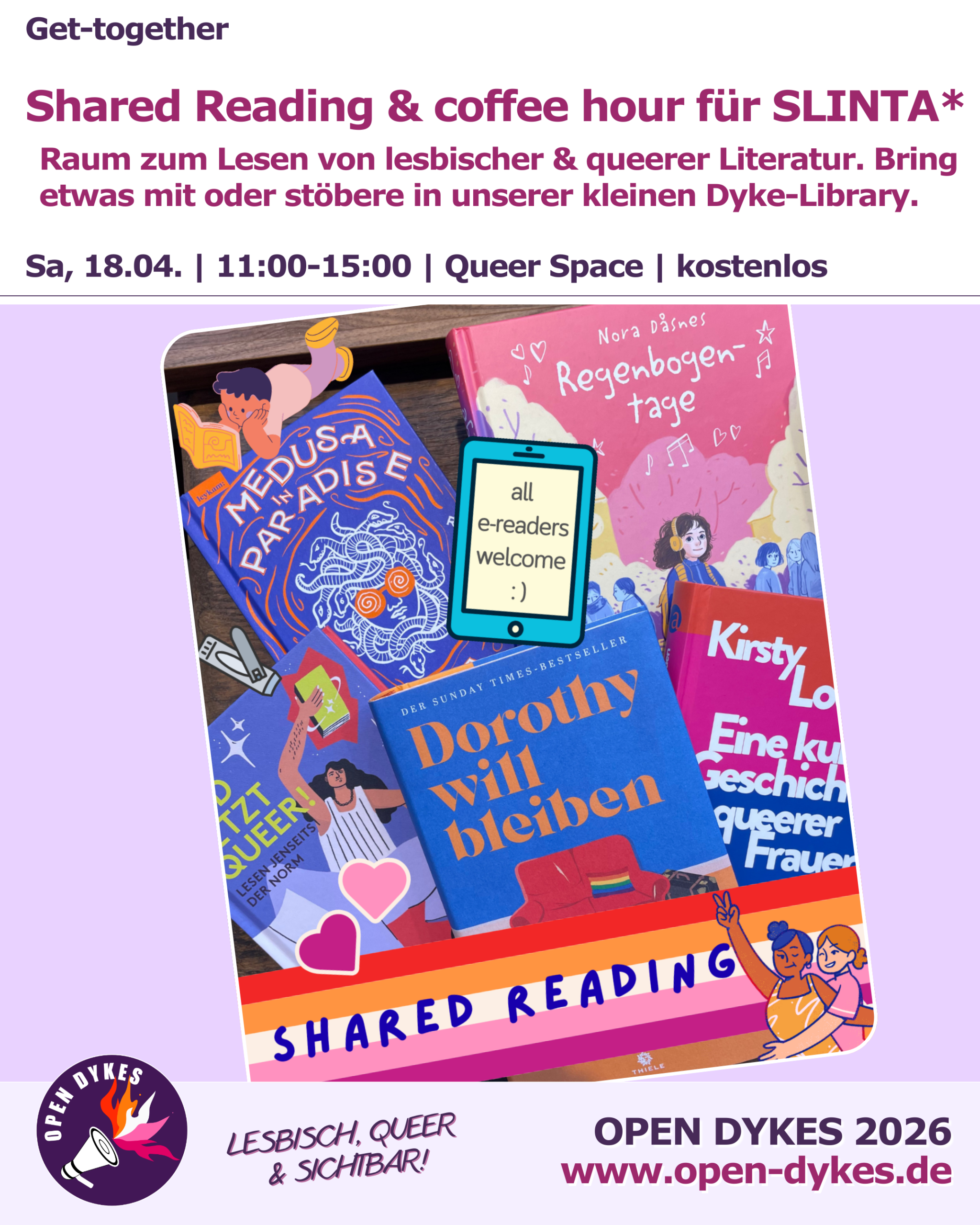 Zielgruppe: FLINTA only Beim Shared Reading laden wir euch herzlich ein mit uns lesbische und queere Literatur zu schmökern. Dabei steht sowohl das Lesen, als auch der Austausch über die […]